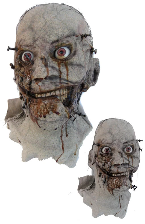 Der mumifizierte Kopf eines Unfallopfers, das sich mit der Pressluft Nailgun Nägel in den Kopf geschossen hat. Die ultrarealistischen Körperteile kann man in keinster Weise mit den sonst üblichen auf den Markt befindlichen Körperteilen vergleichen. Die derbe und krasse Darstellung der Verletzung ist für den privat Bereich vor allem für Schausteller, Event-Veranstalter und als Filmrequisite von nutzen um sich von billigen Horroreffekte abzuheben.